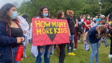 In Queens, a single college student who walked out of college held a signal that read: “How quite a few a lot more youngsters have to die right before our lawmakers act.”