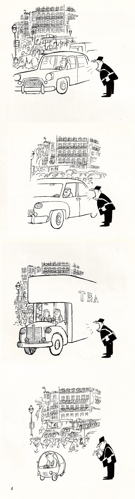 This is the entrance and back again handles, and an interior cartoon sequence by Jean-Jacques Sempé from issue number 104, September 1977.